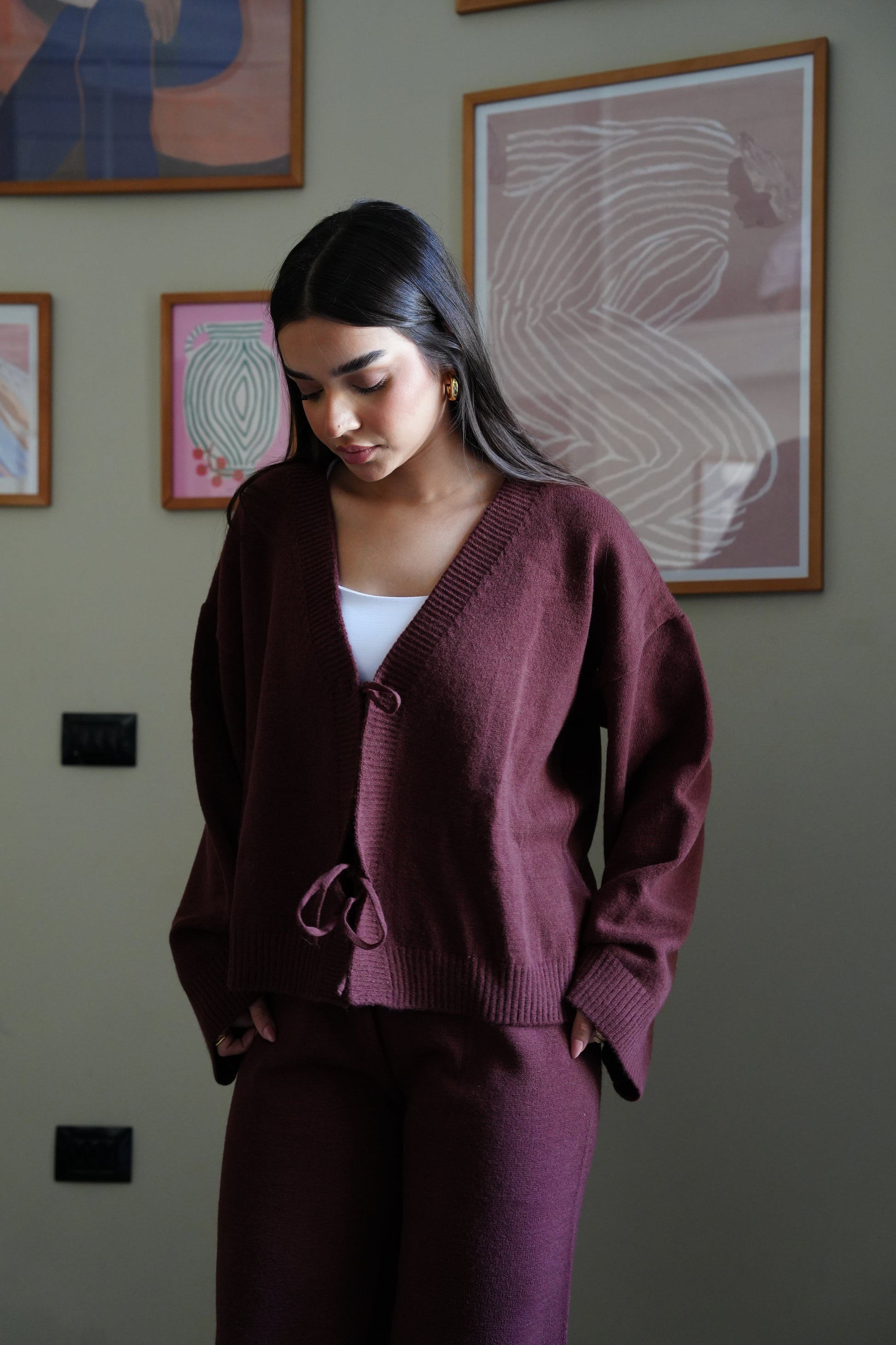 Bow Knit Set In Brown